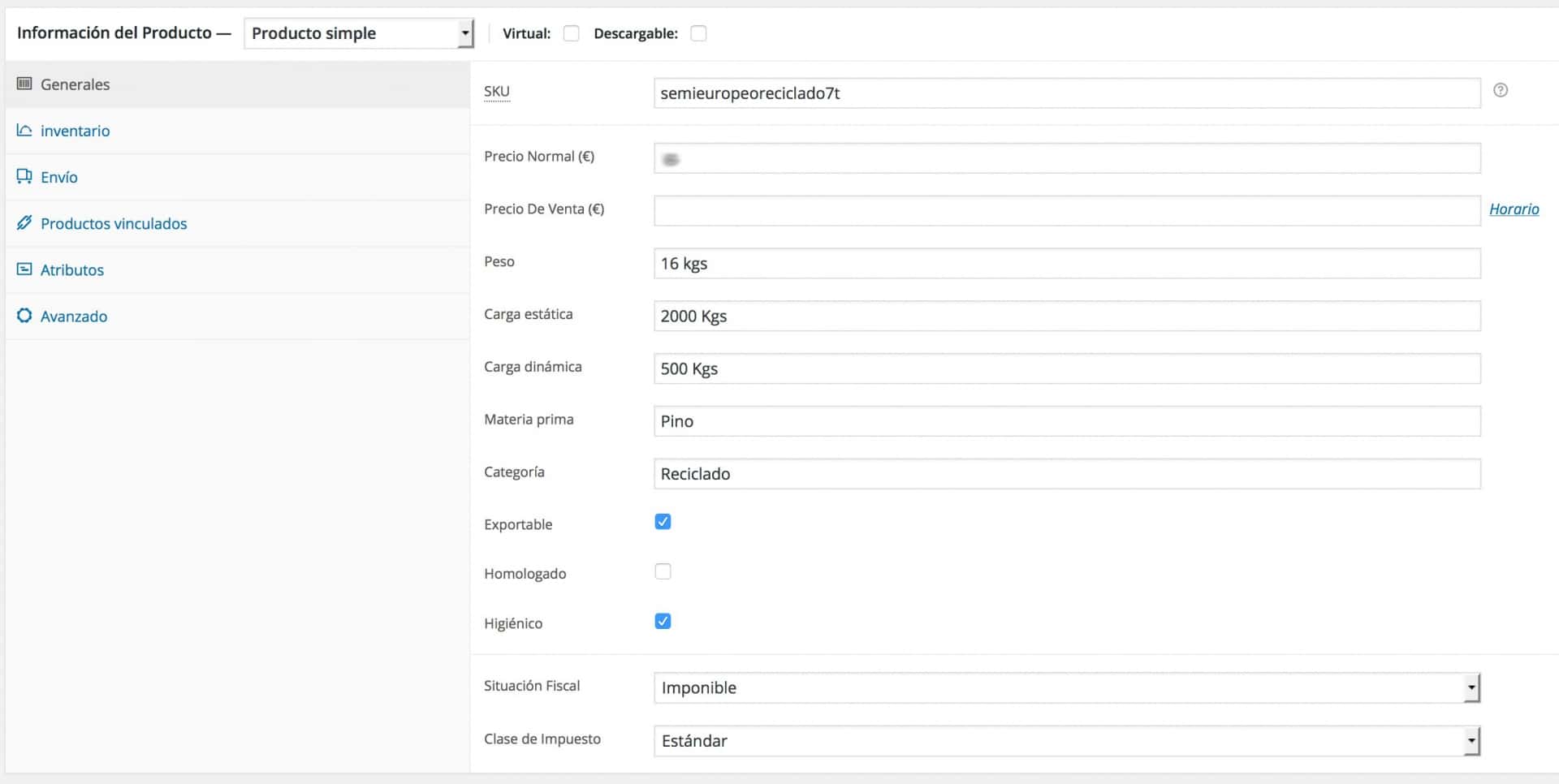 En la ficha interna del producto veremos los nuevos campos personalizados en la pestaña Generales.